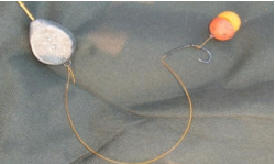 Zuerst zur Montage. Ich fische eine Selbsthakmontage mit Haarvorfach. Hierbei wird ein schweres Blei auf die Hauptschnur aufgezogen und die Haarmontage mit einem Wirbel an der Hauptschnur befestigt. Hierbei sollte beachtet werden, dass die Hauptschnur und die Rute das Gewicht auch aushalten. Ein Vorfach für diese Montage ist zwischen 12 und 25 Zentimeter lang und wird meistens auf geflochtenem Vorfachmaterial zwischen 15 und 35 Pfund Tragkraft gebunden. Dabei unterscheidet man auch von steifem, ummantelten Material und einem weichen, nicht ummantelten Vorfach, wobei das weichere natürlicher wirkt als das ummantelte.